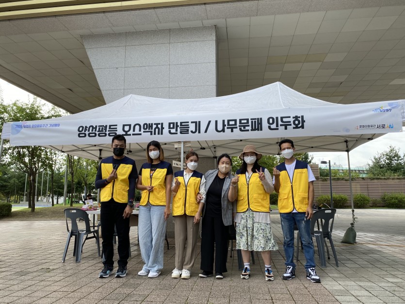 (지역사회 협력) 2022 양성평등주간 부대행사 체험 부스 운영 페이지 정보 작성자 seolo 댓글 0건 조회 1,051회 작성일 22-10-02 21:06 목록 본문 행사명: 2022 양성평등주간 부대행사일 시: 2022. 9. 3.(토) 장 소: 유앤아이센터 야외 행사부스(풋살구장 앞) 참석자: 나무인두화, 힐링Flower, 다문화이팅 회원 5명주최/주관: 화성시, 화성시 여성가족과 / 화성시여성단체협의회내 용: 체험부스운영 (양성평등 모스 액자 / 나무 문패 인두화) 이전글(기관 협력) '2022년 이주 배경 청소년, 내일이 기대되는 진로 멘토링' 현장 진로 체험 22.10.02 다음글(지역사회 후원)재단법인 화성FC 다문화, 이주배경 유소년 축구교실 지원 22.09.30